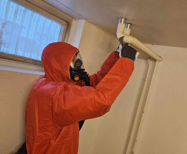 3. Fuktigt och skadat material rivs ut, ofta med dammfria metoder för att skydda inomhusmiljön.